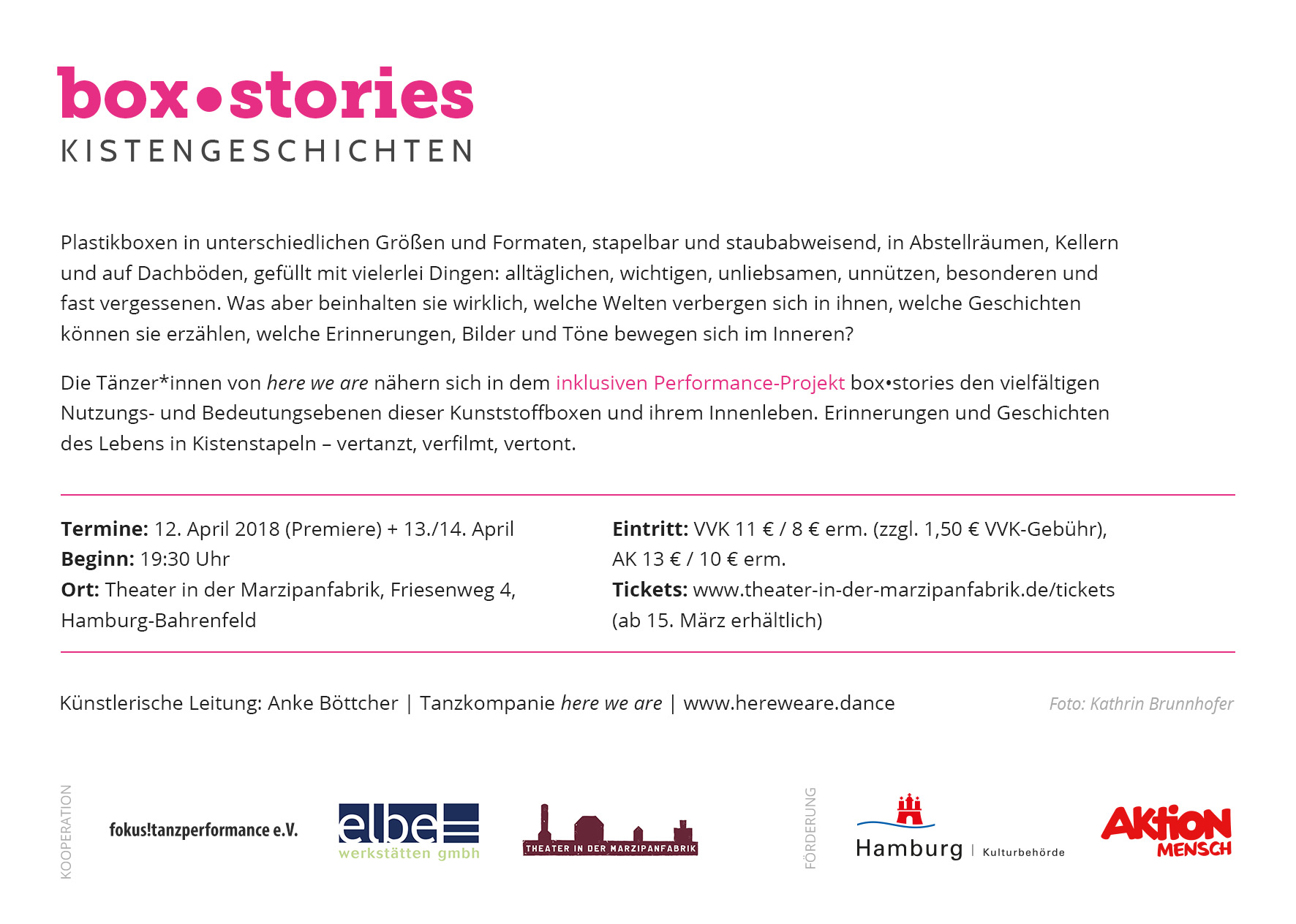 box•stories hatte am 12. April 2018 im Theater in der Marzipanfabrik in Hamburg-Bahrenfeld Premiere.
